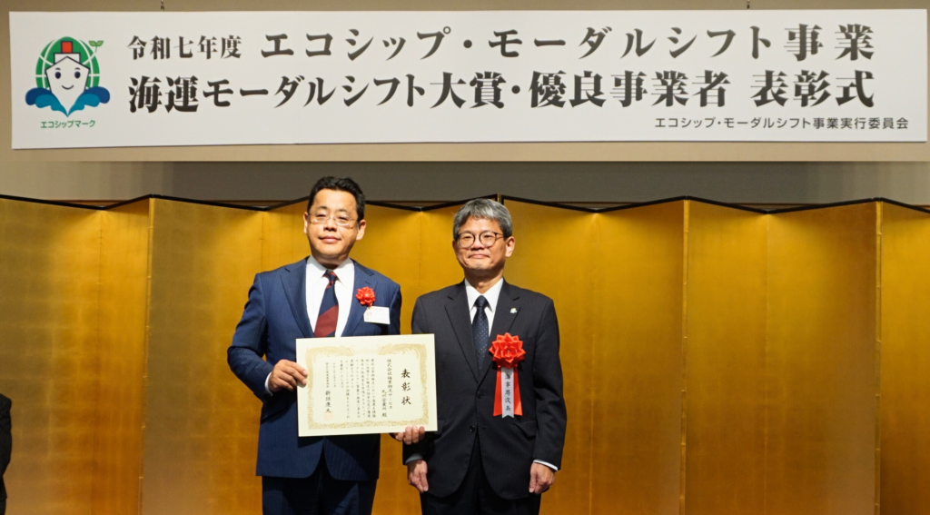 令和8年3月9日に国土交通省より発表された「令和7年度海運モーダルシフト大賞・優良事業者表彰」において、株式会社梅里物流サービスの九州営業所が「優良事業者」として表彰されました